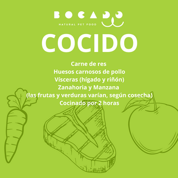¡Una delicia creada con amor! ¡Emocionante novedad! Muy pronto podrás deleitar a tu mascota con Bocado Cocido, la mezcla que ha cautivado los corazones de nuestros clientes caninos. Este manjar excepcional se cocina a fuego medio, durante un tiempo perfectamente controlado, logrando una textura suave que favorecerá la digestión de nuestros adorados amigos de cuatro patas.