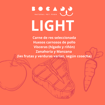 ¡La elección ligera y saludable para tu mascota! Bocado Light, la mezcla ideal para mantener a tu perro en forma y saludable. Especialmente formulada para controlar el peso, esta receta ligera está equilibrada para satisfacer las necesidades nutricionales sin exceso de calorías.
